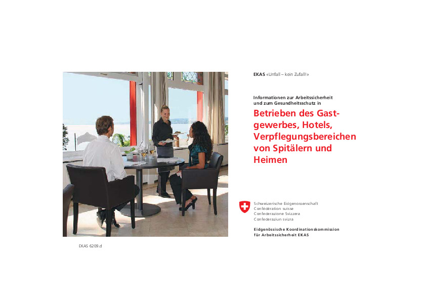 «Unfall - kein Zufall!» Informationen zur Arbeitssicherheit und zum Gesundheitsschutz in Betrieben des Gastgewerbes, Hotels, Verpflegungsbereichen von Spitälern und Heimen