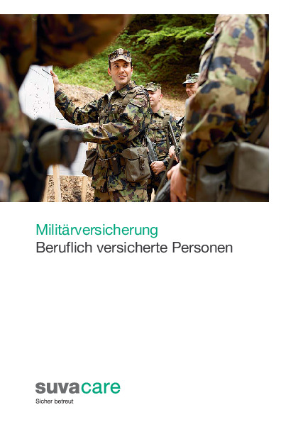 Die Suva ist mehr als eine Versicherung; sie vereint Prävention, Versicherung und Rehabilitation. Die Militärversicherung ist eine Versicherungs- und Haftungseinrichtung des Bundes vor allem für Dienstleistende in Armee, Zivilschutz und Zivildienst. Seit dem 1. Juli 2005 führt die Suva im Auftrag des Bundes die Militärversicherung als eigenen Sozialversicherungszweig mit eigenem Gesetz und eigener Rechnung. In dieser Broschüre finden Sie wichtige Informationen über die Militärversicherung, Ihren Versicherungsschutz und die Prämien sowie Details zu den Versicherungsleistungen. Die Militärversicherung hat verschiedene Agenturen, an welche Sie sich wenden können: Die Adressen und Telefonnummern der Agenturen finden Sie in der Broschüre. Weitere Informationen finden Sie im Leitfaden der Militärversicherung (Bestell-Nr. 4515.d) oder unter www.militärversicherung.ch. Diese Broschüre dient lediglich als Ergänzung des Leitfadens der Militärversicherung.