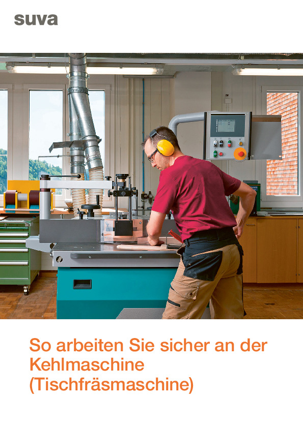Diese Broschüre ist eine praktische Arbeitshilfe für alle Bediener von Kehlmaschinen (Tischfräsmaschinen). Stellen Sie das Dokument Ihren Mitarbeitenden zur Verfügung – um an diesem anspruchsvollen Arbeitsplatz maximale Sicherheit und höchsten Schutz zu gewährleisten. Bediener von Kehlmaschinen müssen insbesondere vor folgenden Gefahren geschützt werden: Mit den Informationen in diesem Dokument bekommen Sie diese und andere Risiken besser in den Griff. Die Broschüre mit zahlreichen Fotobeispielen widmet sich unter anderem den folgenden Themenkreisen: Wenn Sie und Ihre Mitarbeitenden die Hinweise und Tipps in dieser Publikation beachten, können Sie die Sicherheit bei der Arbeit an der Kehlmaschine wesentlich erhöhen. Eine Nichtbeachtung der Sicherheitshinweise ist grobfahrlässig und kann im schlimmsten Fall zu schweren Unfällen und Verletzungen führen.