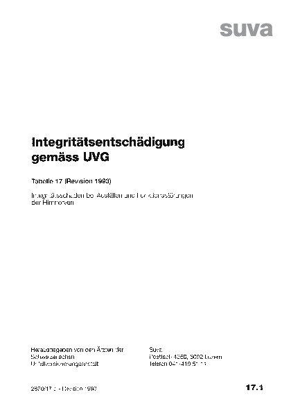 Die Tabelle 17 gibt Ihnen einen Überblick über Funktionsstörungen und Ausfälle der Hirnnerven. So lässt sich die Integritätsentschädigung gemäss UVG begründen.