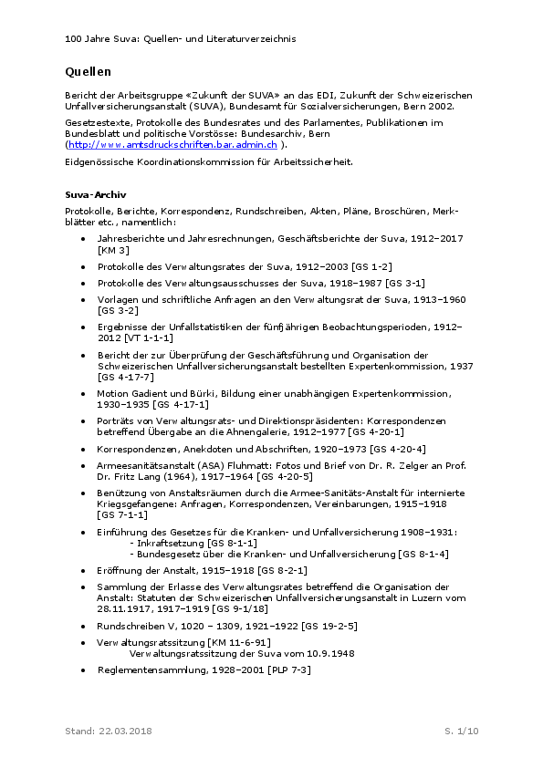 100 Jahre Suva: Quellen-und-Literaturverzeichnis
