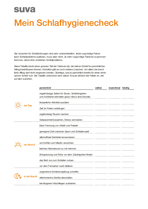 Arbeitsblatt «Schlafhygienecheck und Tipps»