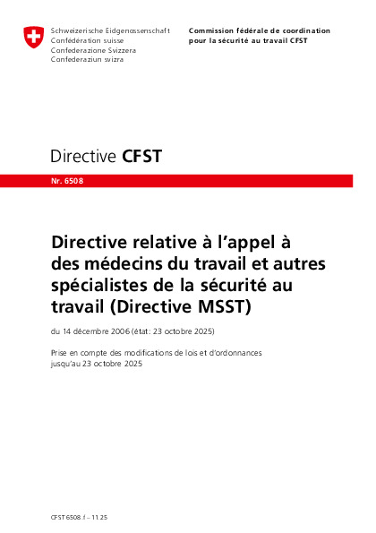 Directive relative à l'appel à des médecins du travail et autres spécialistes de la sécurité au travail (Directive MSST)