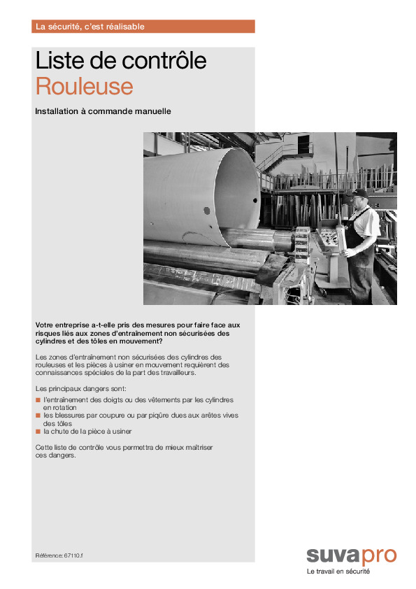Liste de contrôle: Utiliser une rouleuse en toute sécurité (commande manuelle)