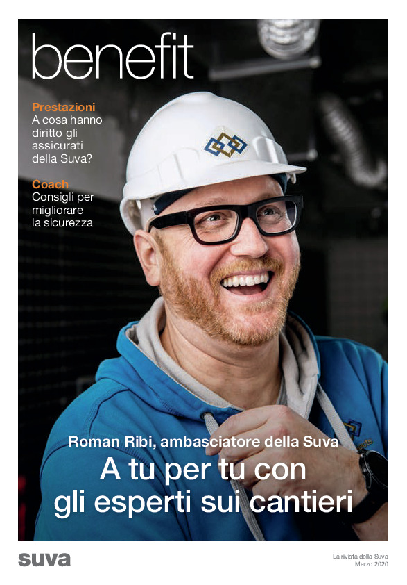benefit è la rivista della Suva e vi offre informazioni utili e interessanti sui temi della sicurezza, della salute e della prevenzione. Così è facile rimanere aggiornati. Tra i vari temi di questa edizione della nostra rivista per i clienti troverete: Volete saperne di più? Qui trovate tutte le altre edizioni della nostra rivista per i clienti benefit. Ogni anno pubblichiamo quattro edizioni della nostra rivista. Ve le mettiamo a disposizione anche online. Scaricate subito l'edizione 1 di marzo 2020 di benefit.