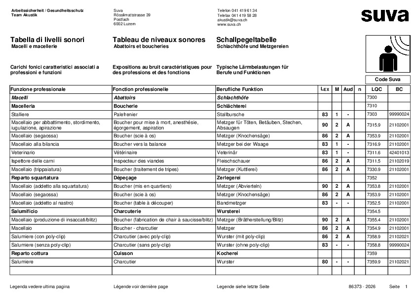 Scaricate la tabella di livelli sonori per macelli e macellerie e verificate quali posti di lavoro e quali collaboratrici e collaboratori sono esposti a emissioni di rumore troppo elevate.
