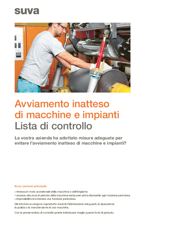Lista di controllo: avviamento inatteso di macchine e impianti