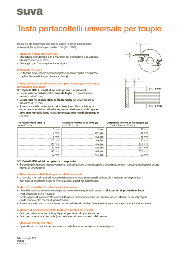 Testa di lama universale per sagomatrici – appendice
